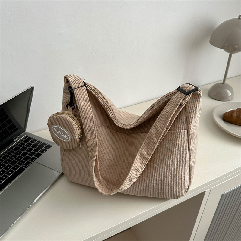 新商品のシンプルな風の韓国版の斜めショルダーバッグの女性のショッピングは小銭入れの小さい大衆の設計のコーデュロイのシングル肩の特包を持ちます。