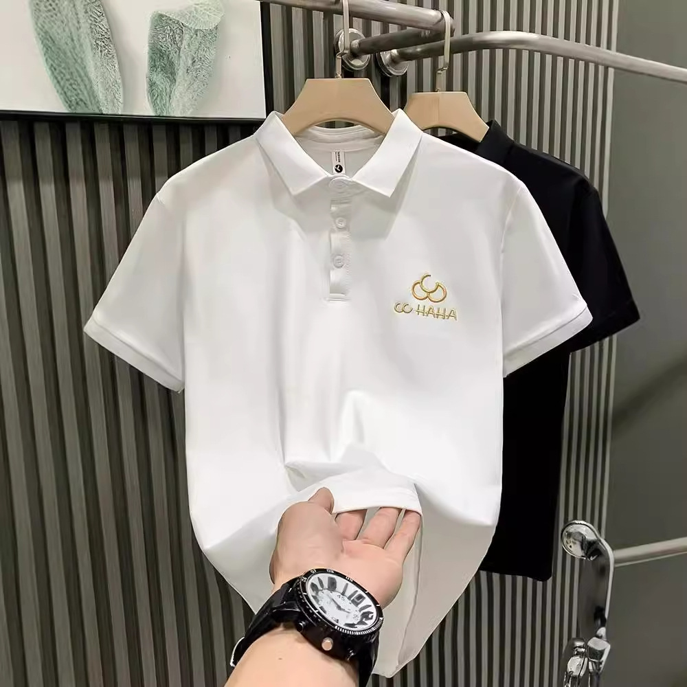 メンズポロシャツ夏トレンド刺繍半袖トップス2024新作カジュアル折り襟半袖tシャツメンズT
