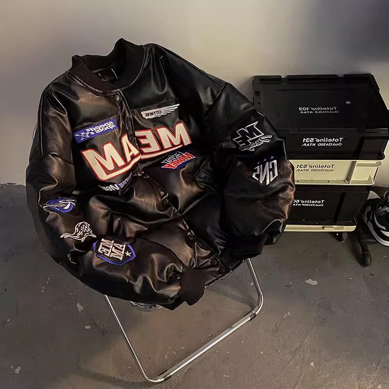 アメリカンレトロ刺繍pu皮厚手野球綿服冬ハイストリートvibe風ヒップホップゆるいカップルパン潮