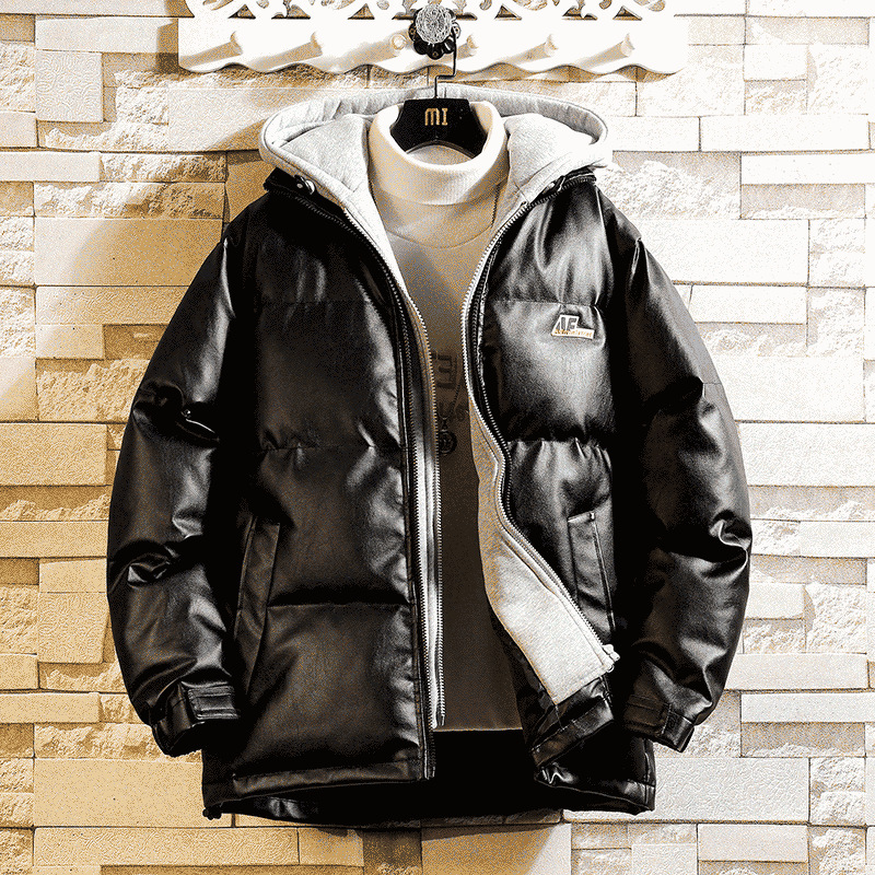2023年冬の新型pu皮綿服男性トレンドinsゆるい百合青少年は両面に綿入れを着ている