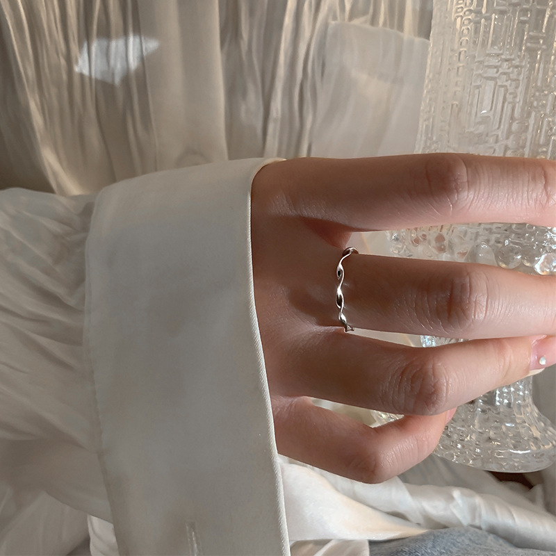 ねじれ素輪指輪女性ファッション個性大衆デザイン食指戒開口調整ins高級ギャル百合