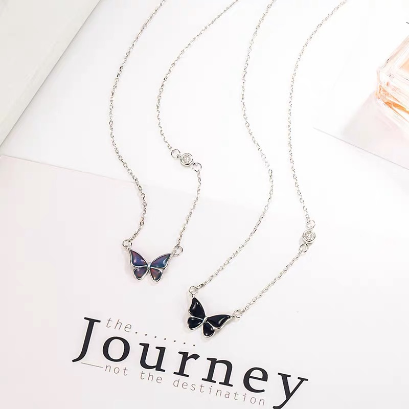 韓国の温度に敏感な色が変わる蝶のネックレス、女性用、小さな新鮮なデザイン、ハイエンドのペンダント鎖骨チェーン、2025年の新しいスタイル