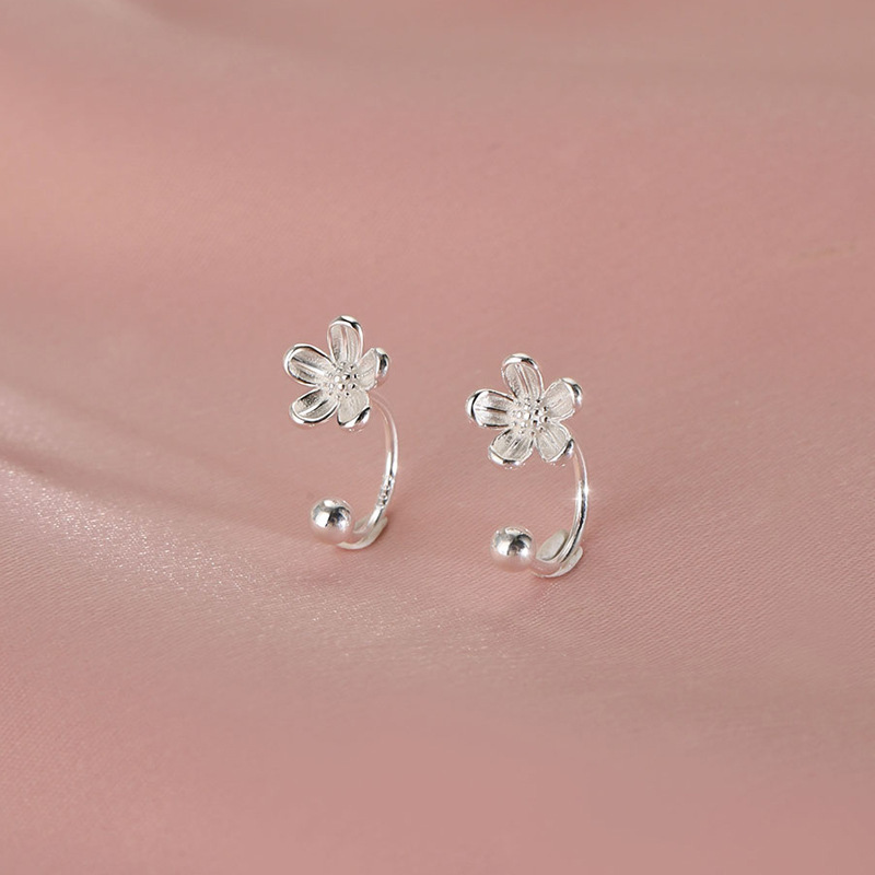 フラワースクリューイヤリングINS新作小さくてかわいい5枚の花びらのフラワーイヤリングミニマリストスタイルネットセレブガーリーイヤーフック