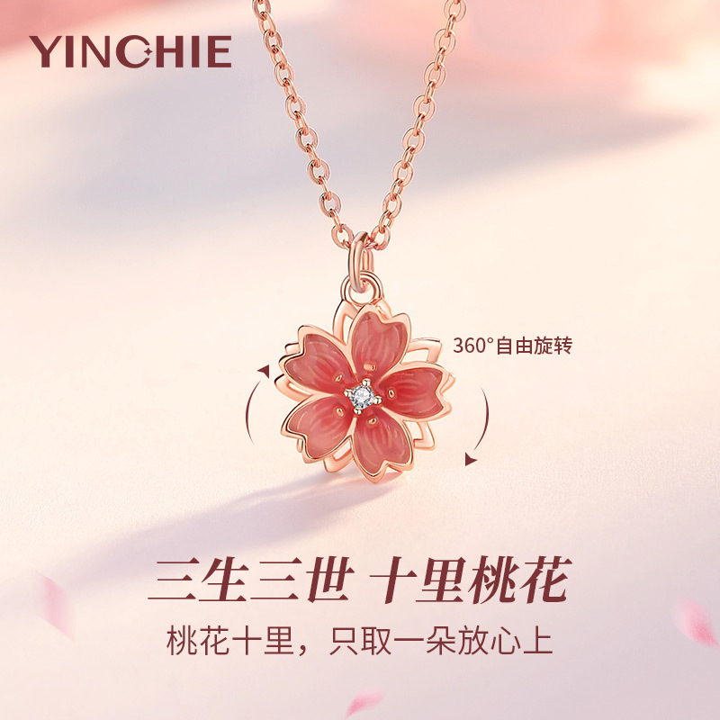 桃の花のネックレスを回転させた女性の夏の贅沢な小衆2022年の新型の鎖の鎖のペンダントの誕生日プレゼントは彼女に送ります。