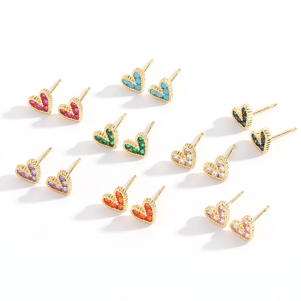 女性のコンパクトなミニイヤリング、ハート型の象嵌ジルコンイヤリング、インインターネットセレブの気質イヤリング、甘くてかわいいジュエリー