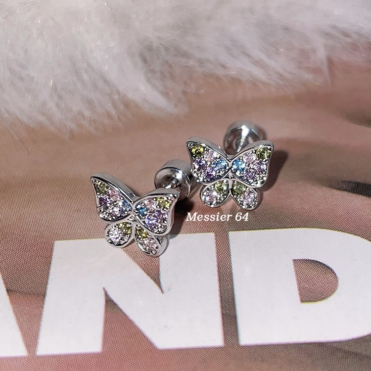 超フラッシュカラージルコン小蝶ピアス甘いクールな個性独特なネジ耳ウォーム2024年新型
