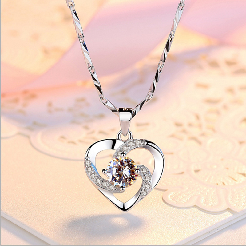 韓国版の新型銀メッキハート形のペンダントの女性の小衆の愛のダイヤモンドのネックレスの鎖のシンプルな水晶のアクセサリーの卸売り