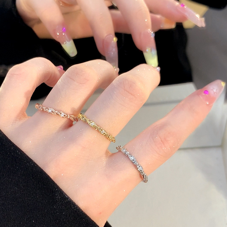 新商品の麻花のダイヤモンドの指輪の女性の大衆は軽くて豪華な素の輪の人差し指の指輪を設計して口を開けて女性の小さい指の輪をやめます。