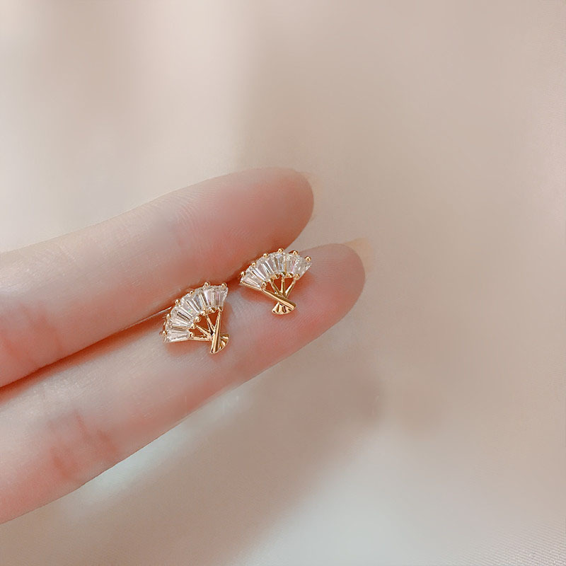 メッキ925銀マイクロジルコン扇子ピアス女性大衆デザインイヤリング夏高級ファッション気質耳飾り卸売り