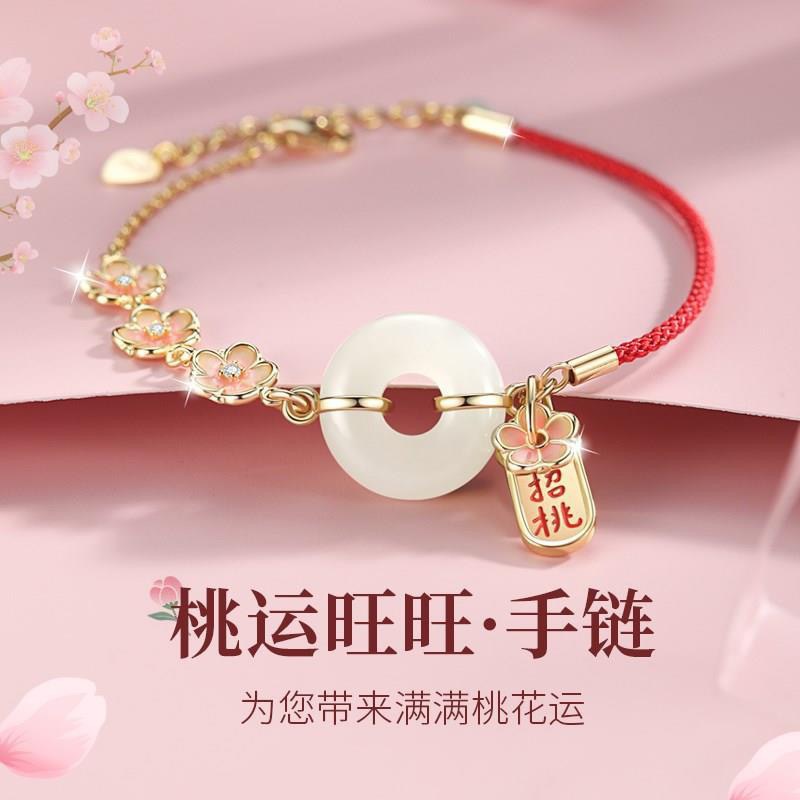 桃の花の赤い縄のブレスレットの女子学生は和田玉の平安をまねて女性の金の手を掛けて本命年の誕生日のプレゼントを飾って彼女に送ります。