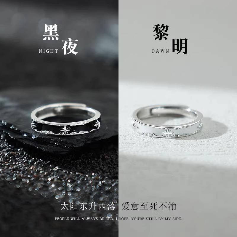 カップルリング、カップルモデル、夜と昼のリング、女性のニッチデザイン、軽い高級感、彼女への高級誕生日プレゼント