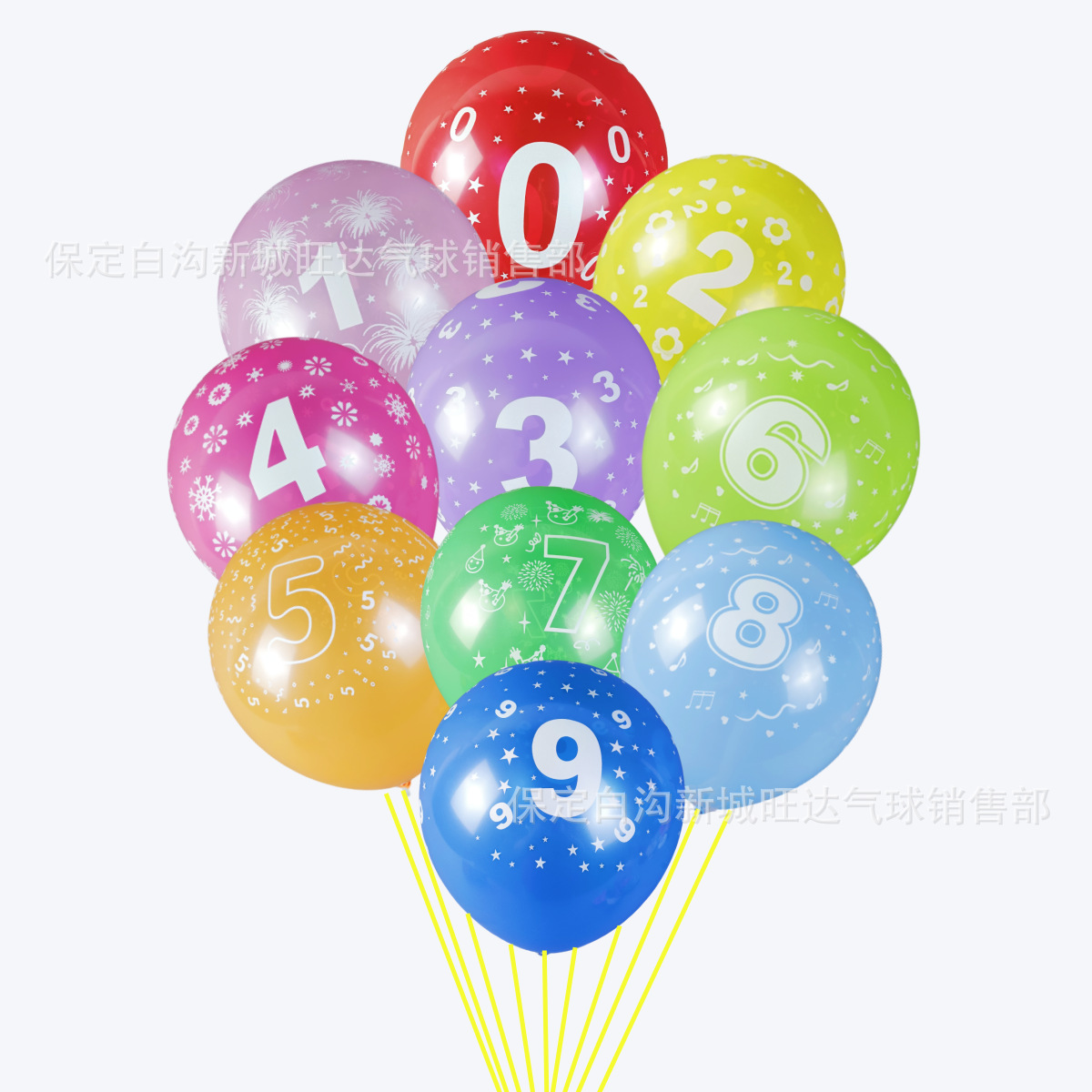 卸売り12インチ2.8グラム0-9デジタル風船誕生日パーティー装飾デジタルプリント風船100個