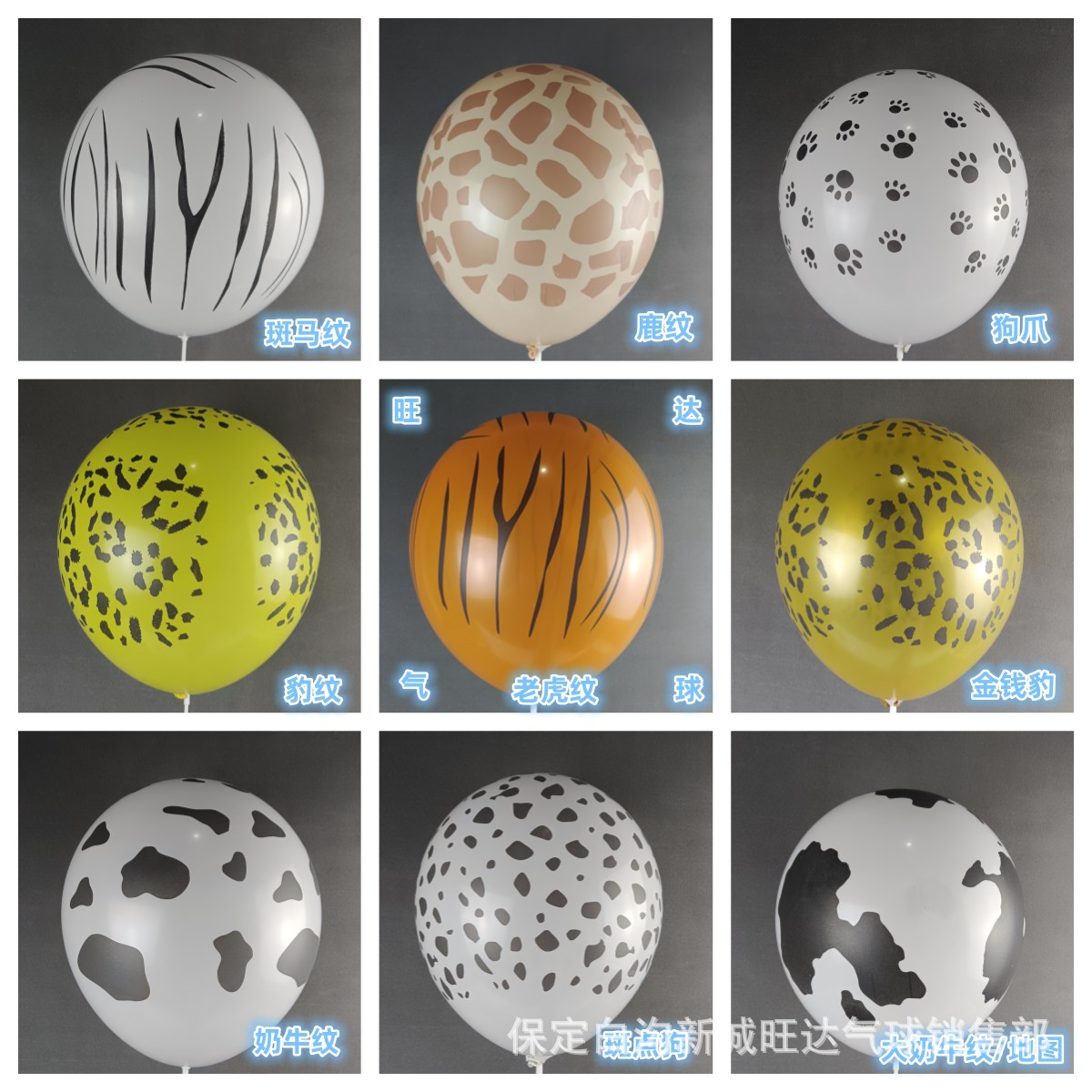 動物要素プリント風船12インチ3グラム100個/シマウマ模様虎紋鹿紋豹紋犬爪乳牛