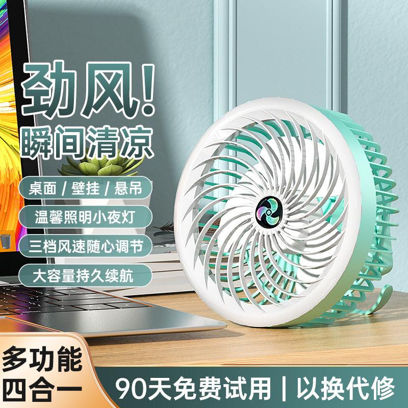 高見え循環ファンナイトライト寮超USB充電ファン強風小型デスクトップフックファン貿易