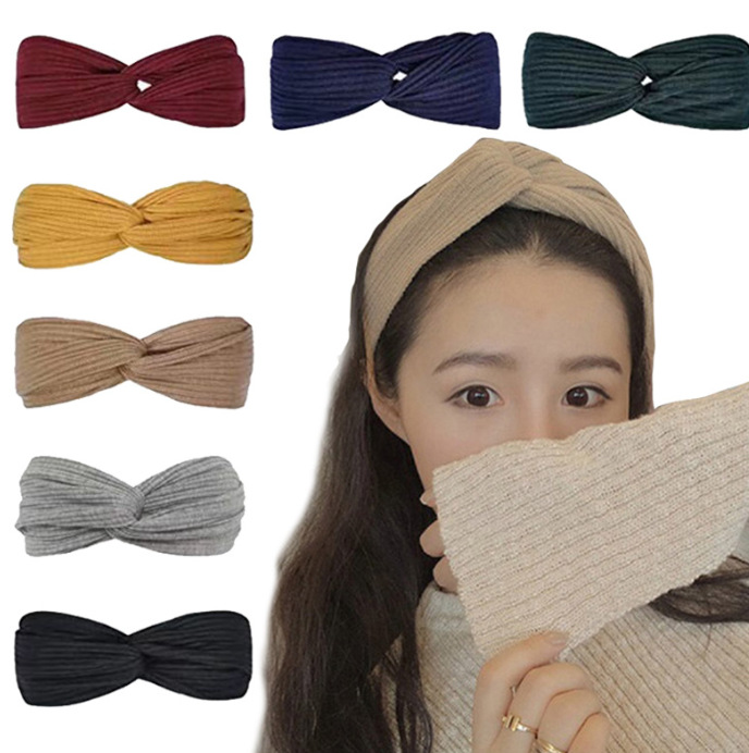 韓国版欧米ニットクロスヘッドバンド洗顔ヘアバンド純色弾力カチューシャヨガ運動ヘアバンド女性