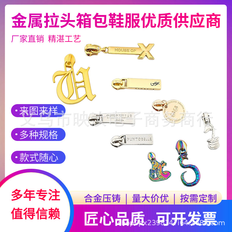 工場カスタマイズされた衣類、ジャケット、金属製のプルロック、ロゴネームプレート、バッグ、スーツケースのプルアクセサリー