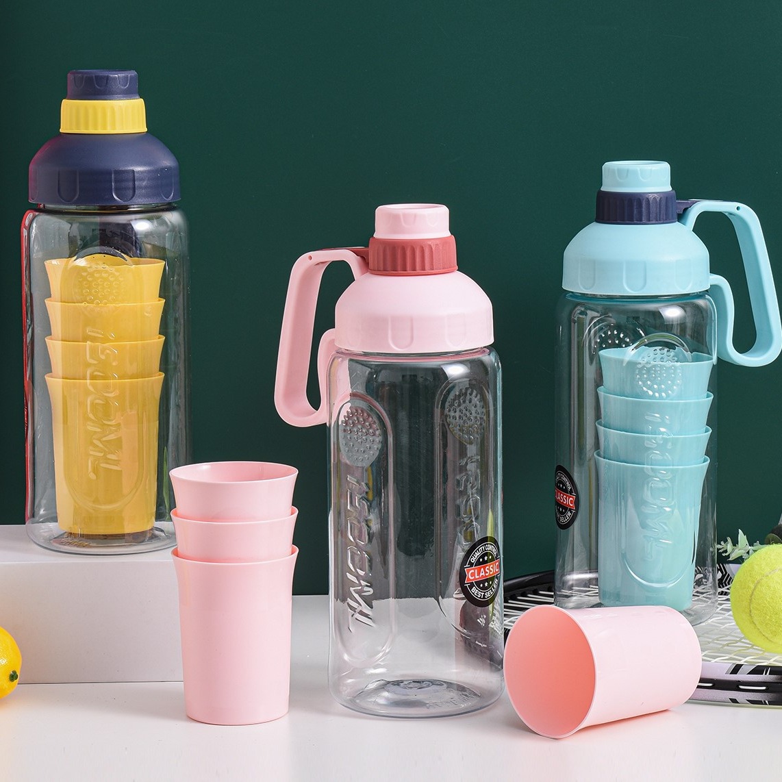 プラスチック大容量冷水ポットセット飲料ジュースティーポット耐高温凉白湯ポットカップ付きポット