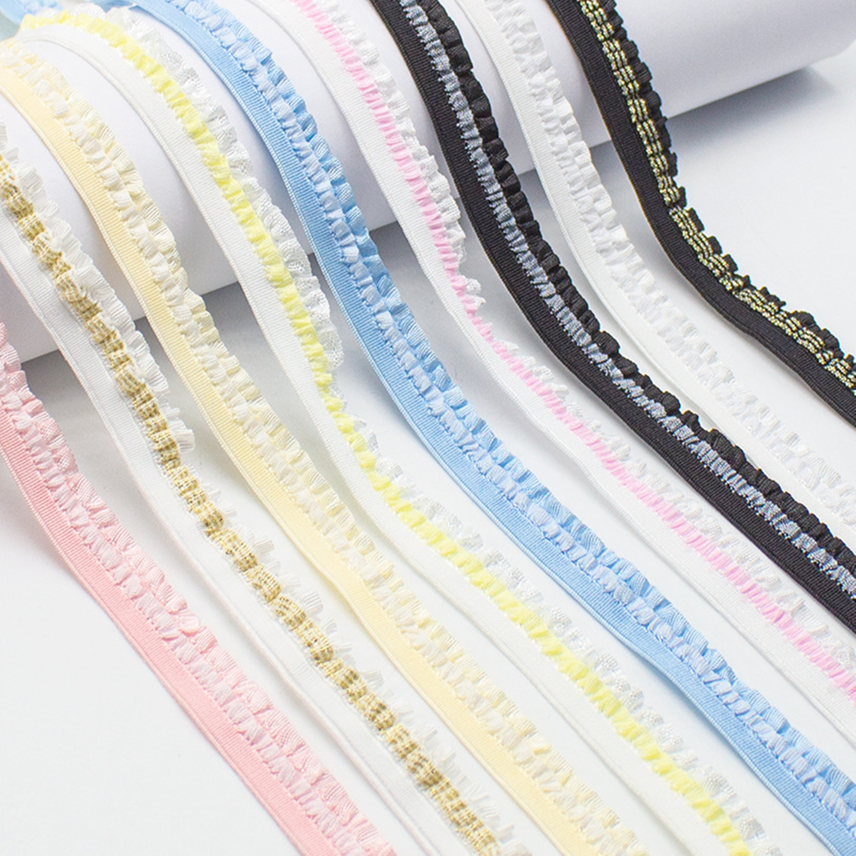 BJD ベビー服アクセサリー 1.2 センチメートル両面二層布木耳ダブルフリルプリーツ弾性レース袖口装飾