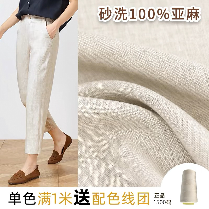ピュアリネン生地ラミー春夏薄手カジュアルスーツドレスワイドレッグパンツシャツサンドウォッシュエスニックスタイル生地