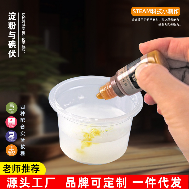 消えた色小学校化学科学実験児童diy科学技術小製作ヨード酒と澱粉材料