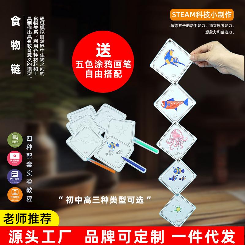 科学実験器材diy食物連鎖生物チェーン幼稚園小手作り科学技術小制作幼児認識