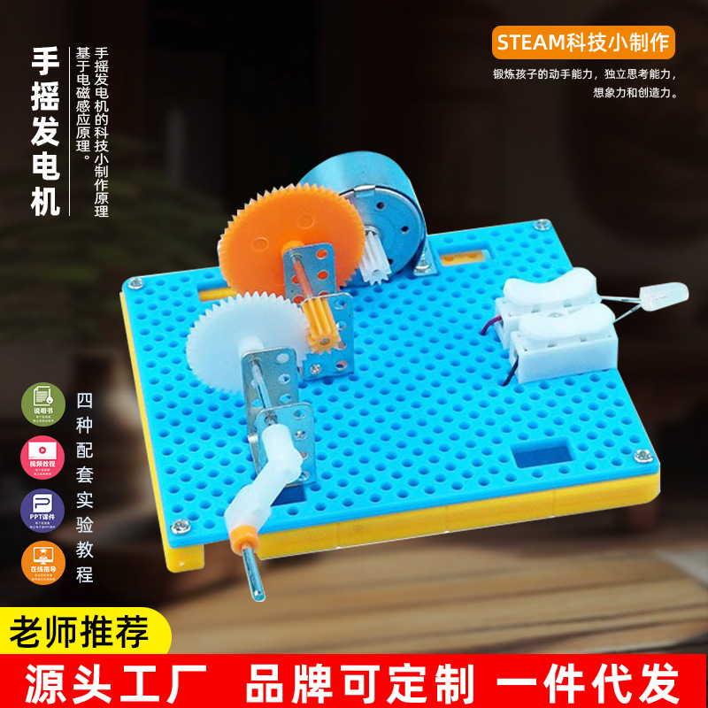 科学技術の小さい制作の手は発電機の小学生の科学実験を揺らします。