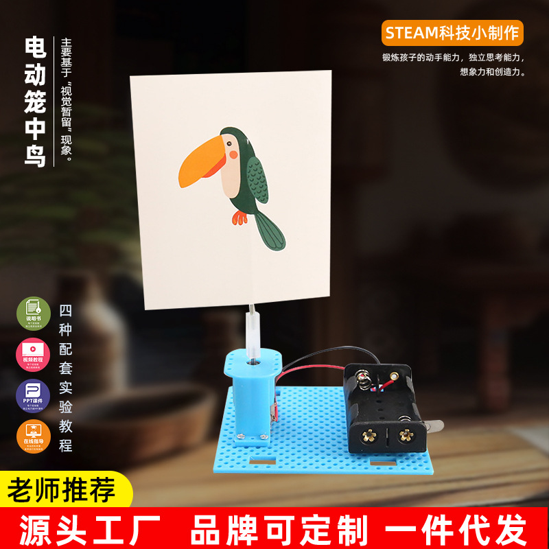 学生diy自作科学技術小制作視覚滞在電動籠中鳥科学実験児童知育教具
