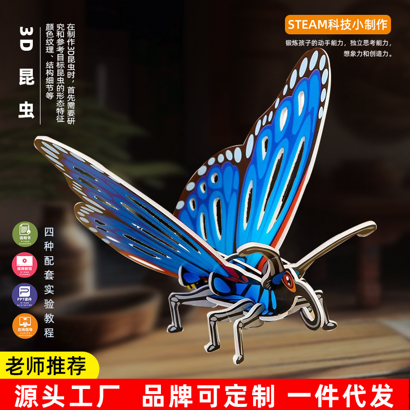 昆虫3d紙の立体パズル幼稚園の手作りdiy子供は早く知育科学技術を教えておもちゃの卸売りを作ります。