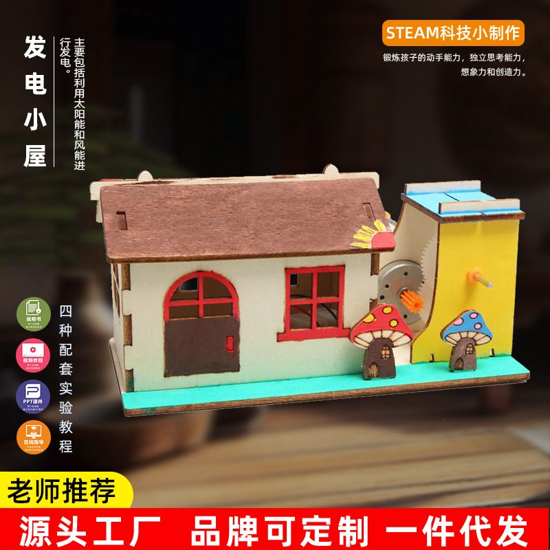 手回し発電小屋児童木製教具科学技術小製作小発明手作りdiy組立模型材料