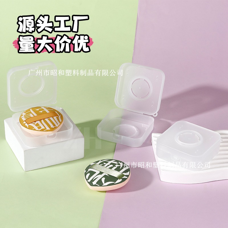 パウダーパフ収納ボックス空箱通気穴付き四角コーナーボックス防塵ポータブル透明PPプラスチック多機能ボックス