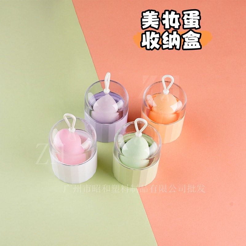 7枚入りエアクッションパフ収納ケース美化粧卵パフ円筒ケース蓋付き防塵携帯透明PPプラスチックケース