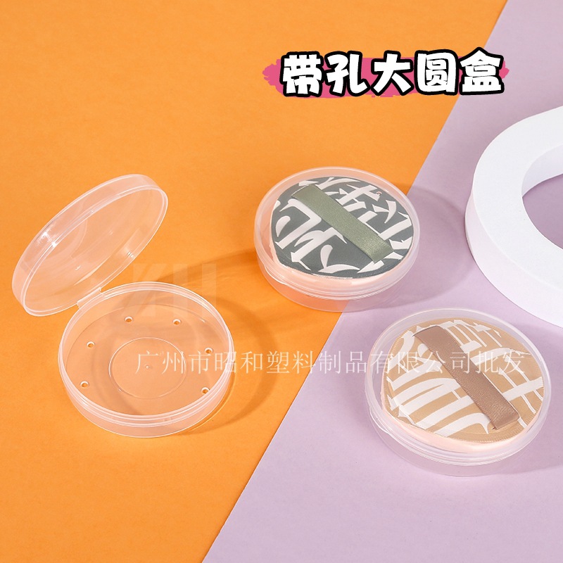 マシュマロパフ収納ケース穴付き通気性大サイズ丸箱爾木ブドウパフケース透明ppプラスチックケース