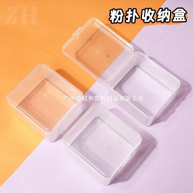 化粧綿収納ボックス ポータブル フリップカバー 透明 防塵 パフ つけまつげ PPプラスチックボックス 正方形プラスチック空箱