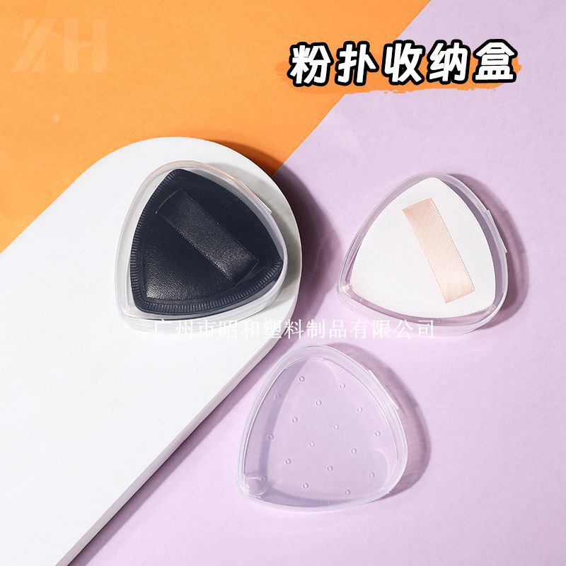 マシュマロパフケーストランペット黒パイナップル三角パフ収納ケース蓋付き通気穴付き防塵透明PPケース