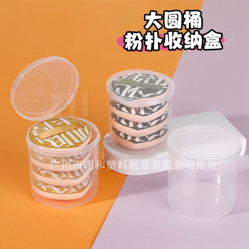 通気穴付きマシュマロクッションパフ収納ボックス防塵小さいサイズラウンドボックスxlパフ透明プラスチック製品ボックス