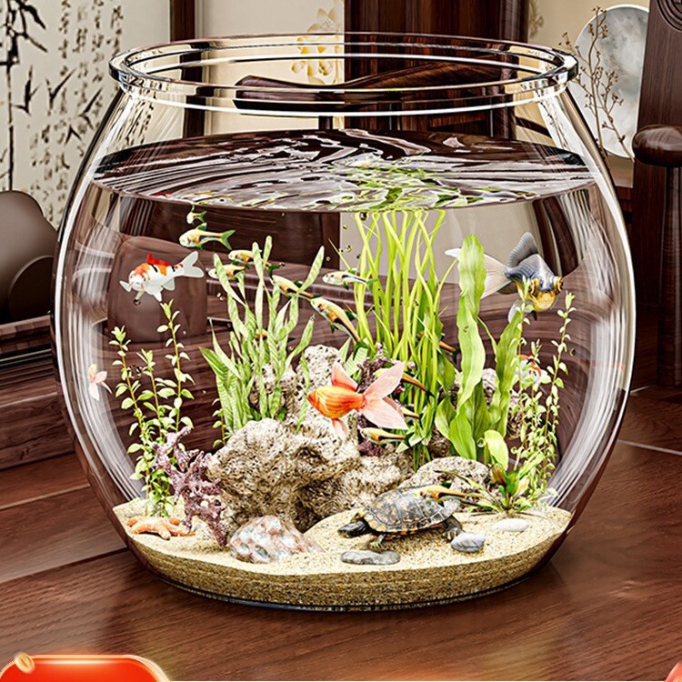 ラウンド水槽プラスチック一体成型模造ガラス落下防止と壊れにくいリビングルームの小さなデスクトップ生態水槽