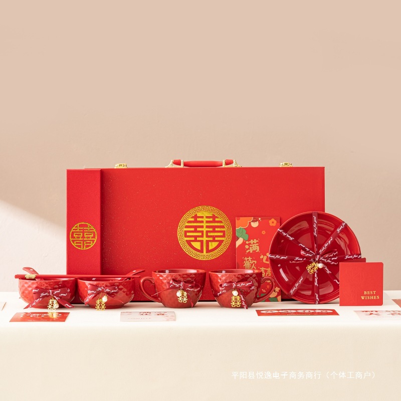 花嫁や親友への卸売ウェディングギフト、実用的な食器ギフトボックスセット、お兄さんや姉妹へのウェディングカップ、ボウル、箸卸売