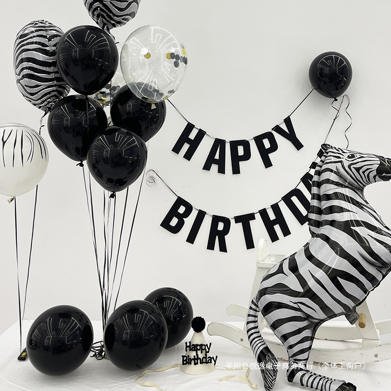 シマウマ誕生日風船シーン配置ネット赤腹ばい体白黒スタイルins風組み合わせロマンチックな背景壁卸売り