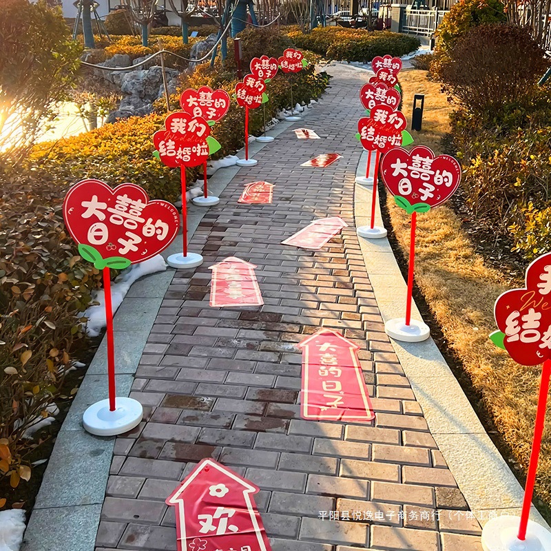 結婚案内標識kt板は農村の結婚式の道端の道を飾ります。