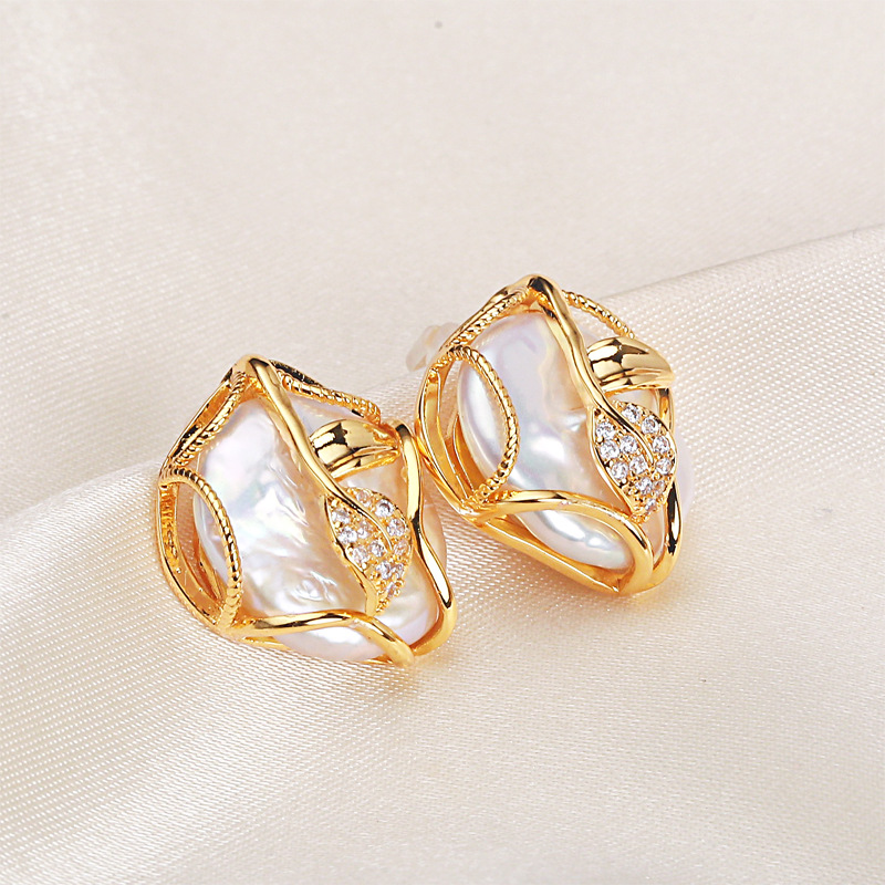 パールアクセサリーバロックフレンチレトロパールピアス925シルバーピン高级感淡水パールピアスピアス