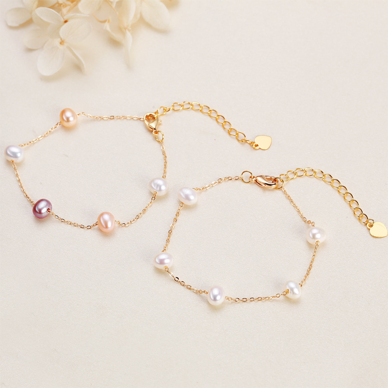 真珠アクセサリー卸売り5mm近円真珠銅金メッキ色諸及びバロックジュエリー淡水真珠ブレスレット女