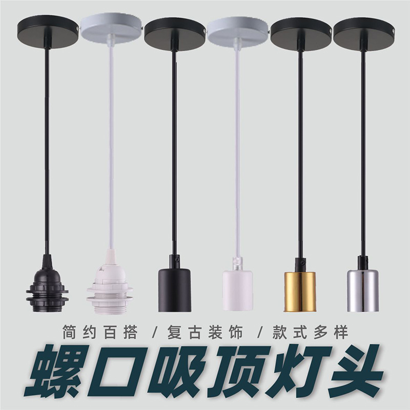 家庭用セラミックランプヘッド工事led電球ソケット線付き明装吊り線付スイッチ付き照明器具部品E27