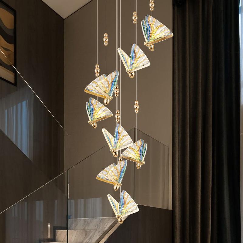 ホテルレストランライトloft創意階段感軽豪華個性バー垂直線複式蝶吊り線照明器具