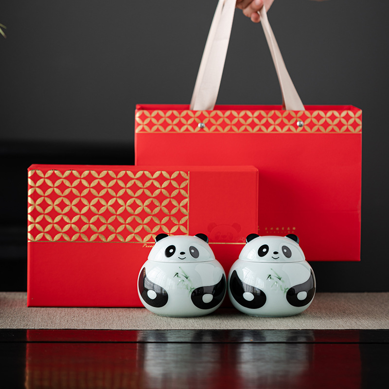 パンダ茶葉缶ギフトボックス創意包装箱峨眉毛峰竹葉青雀舌紅茶緑茶通用印logo