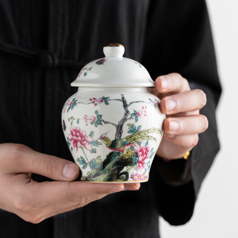 中国式田園風茶葉缶空缶トランペット陶磁器密封缶用防湿小茶倉通家庭用客間置物