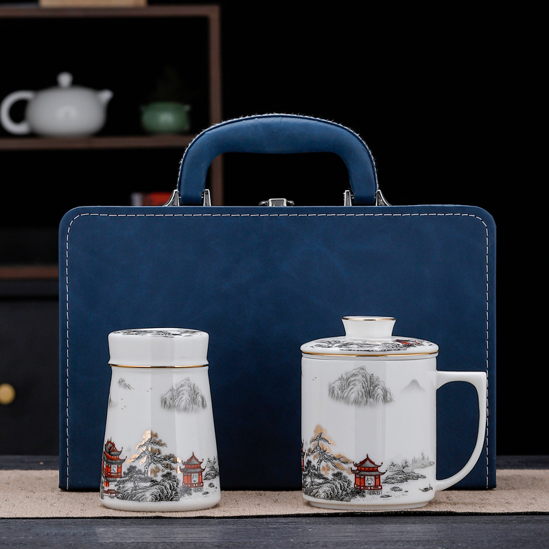 墨糸哥窯陶磁器杯礼箱セット茶水分離ろ過マグカップビジネス広報広告オープンプレゼント