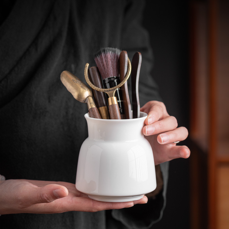 マトン脂肪翡翠茶筒茶道六紳士セット黒檀カンフー茶セットアクセサリー茶ペンクリップ針スプーンカップフォークペンホルダー