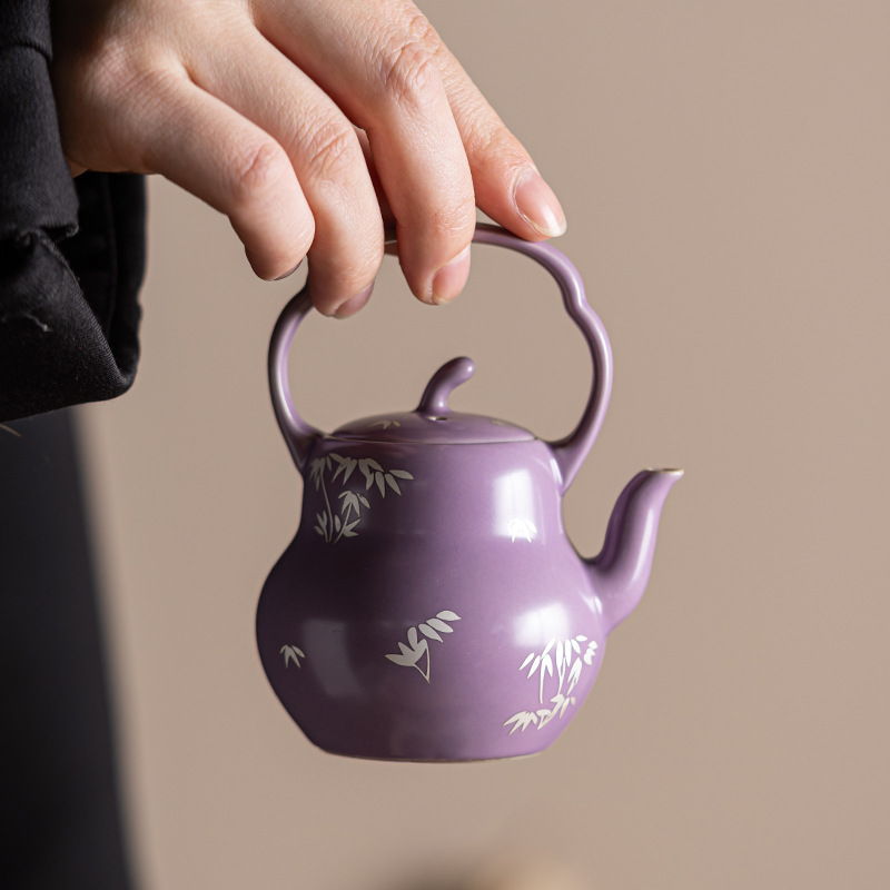 紫汝銀竹影ティーポットトランペット提梁壺陶磁器泡茶器家庭用茶室茶芸展示オーダーメードlogo