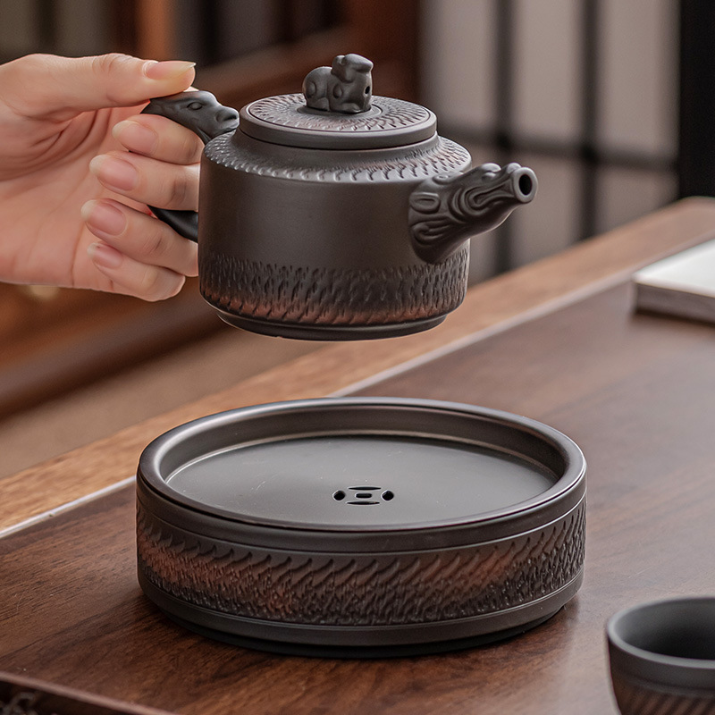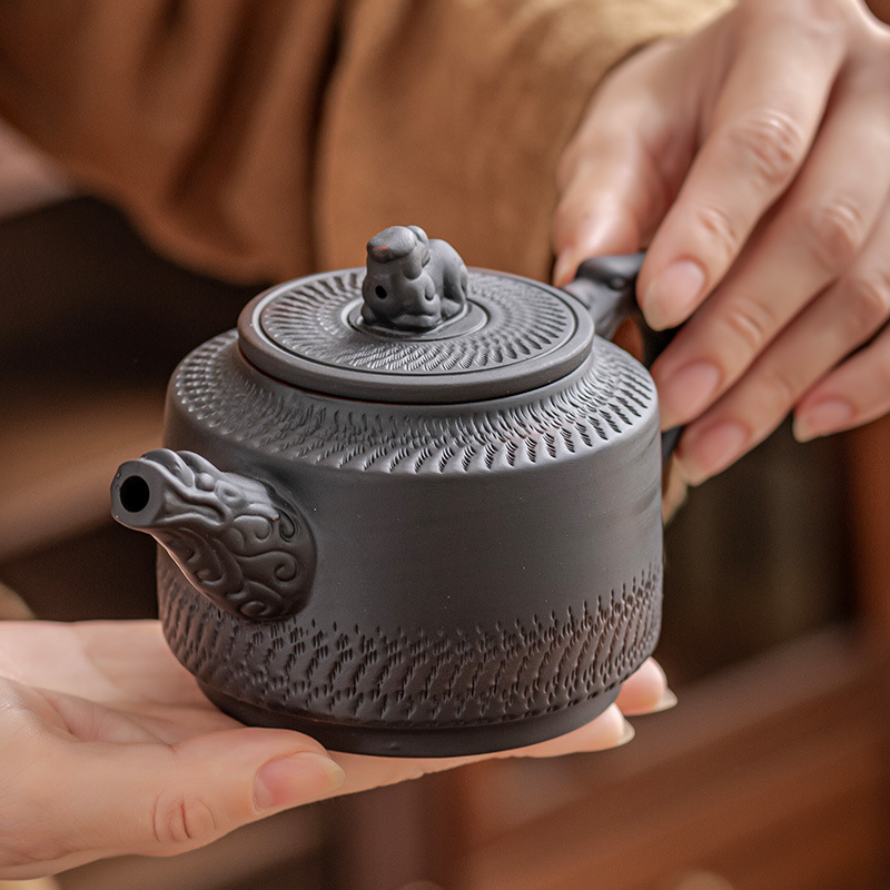 レトロ紫陶跳刀ティーポット井手すりポット高級工夫茶器家庭用茶器お土産カスタムロゴ