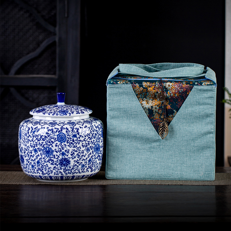 大サイズ青花茶缶布包陶磁器密封缶紅茶プーアル白茶陳皮ばら積貯蔵カスタムlgoo